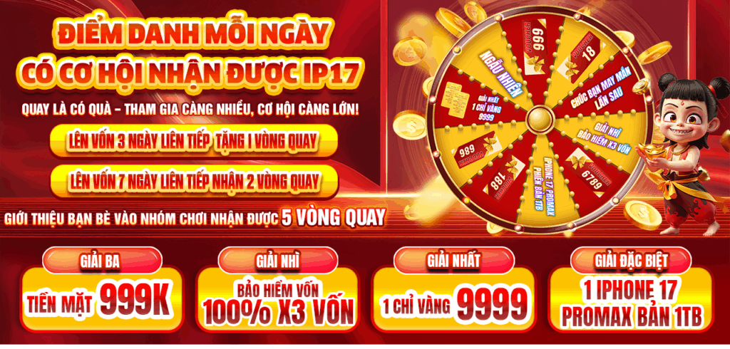Quay là có quà – tham gia càng nhiều, cơ hội càng lớn. Điểm danh mỗi ngày, mời bạn bè nhận thêm lượt quay. Truy cập website chính thức để tham gia ngay.